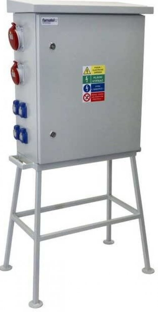 Staveništní rozváděč elektroměrový nízkého napětí sr1212-SRFV40101000.1/36M IP44 s přípravou pro hlavní měření (přímé) PRE, jištěný s chráničem 40/4/003 hlavním vypínačem 40A a hlavním jističem B40/3 na kovovým stojanu, zásuvky na boční stěně.Použité pouzdro má k dispozici 36mod. míst. Samostatná elektroměrová část s plombovatelnými šrouby osazená elektroměrovou deskou EATON ZBR (montáž elektroměru na kříž PRE), jistící prvky EATON, PE svorkovnice součástí (2ks 2x16mm2+4x10mm2), N svorkovnice součástí (2ks 2x16mm2+4x10mm2), plné dveře - osazené dvěma kovovými zámky na čtyřhranný trnový klíč, možnost změnit směr otevírání dveří, ochranná stříška s přesahem, osazené vývodky 2xM2. Jistící přístroje EATON 10kA: 4xPL7-B16/1, 1xPL7-B16/3, 1xPL7-B32/3, PF7-40/4/003 (citlivost na reziduální proud 30mA), 1xPL7-B40/3 na vstupu Připojení do svorkovnice pro max. kabel až 5x25mm2 Al/ Cu.Technické parametry: Jmenovitý proud: 40 A Jmenovité napětí: 400 V IP: IP44 Počet zásuvek 230V/16A s kolíkem: 4 Počet zásuvek 16A/400V/5pól: 1 Počet zásuvek 32A/400V/5pól: 1 S proudovým chráničem Irez 30mA: Ano Jisticí a ochranné přístroje: EATON 10kA (PF7, PL7) Rozměr pouzdra: 600 x 500 x 250 mm Plné dveře - osazené dvěma kovovými zámky na čtyřhranný trnový klíč Matriál: Plech Způsob instalace: Mobilní Barva: Světle šedá, RAL 7035 Rozsah teplot: -25°C až +40°C Aplikované normy: IEC 61439-4