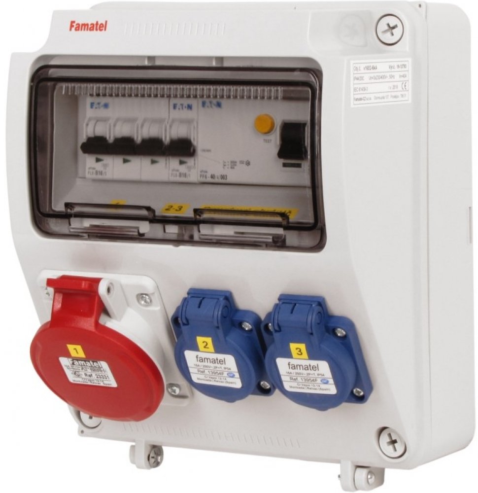 FAMATEL zásuvková kombinace ZSF 20100000.1 /3957 jištěná s chráničem 2x230V, 1x16/5 245x215x155