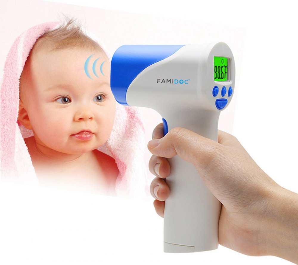 Famidoc bílý;Odstíny šedé a stříbrné spánkové, čelní, ušní bezkontaktní