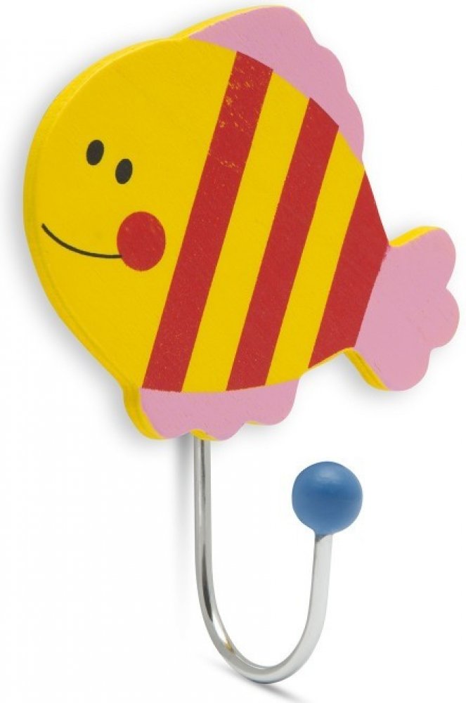 Ručně malovaný háček s dřevěnou figurkou zvířátek, které si děti rychle oblíbí.