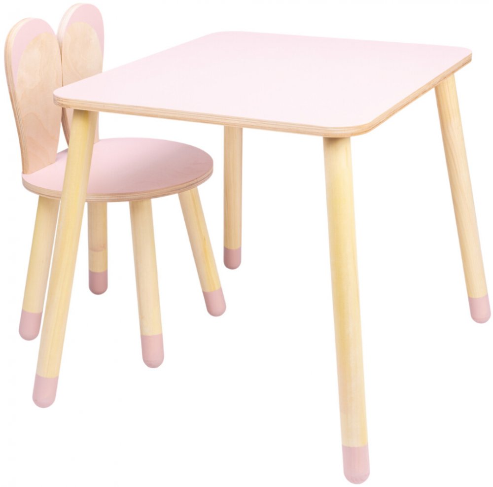 Roztomilý set Bunny – dětská židlička s oušky a stolek, březová překližka, zaoblené hrany, pevná a bezpečná konstrukce | EuropeElite.eu