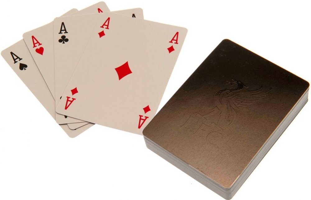 Značkové hrací karty Liverpool FC ve výkonném stylu.Každá jednotlivá karta je ozdobena znakem Liverbird.V potištěné kartonové krabičce.