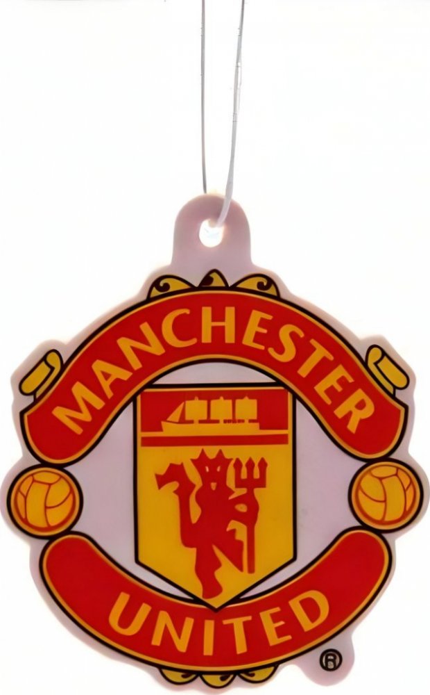Klasický osvěžovač vzduchu Manchester United ve tvaru znaku.