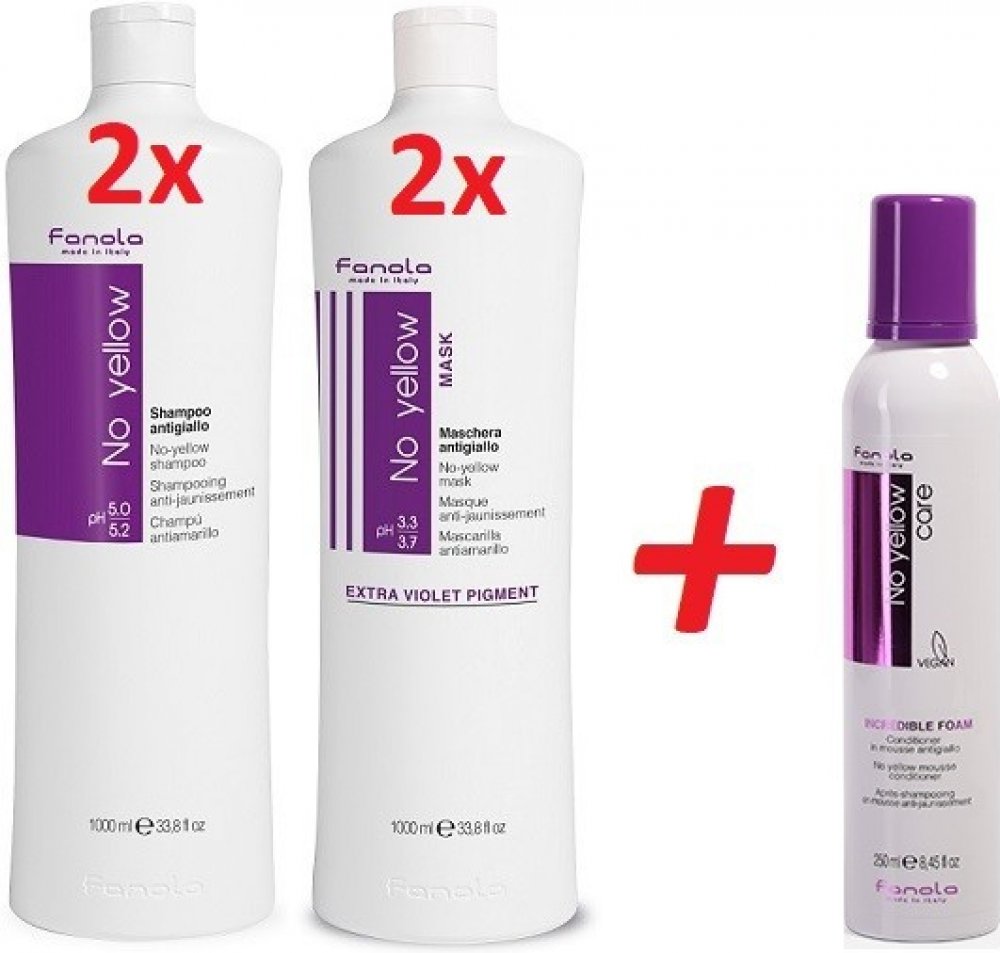 2x Fanola No Yellow Šampon na šedivé vlasy 1000ml + 2x Fanola No Yellow Maska na šedivé vlasy 1000ml + ZDARMA Fanola No Yellow Incredible pěnový kondicionér 250ml