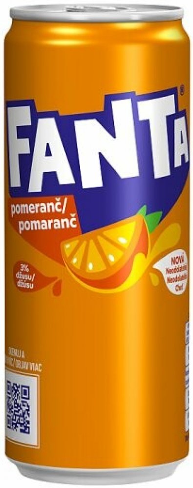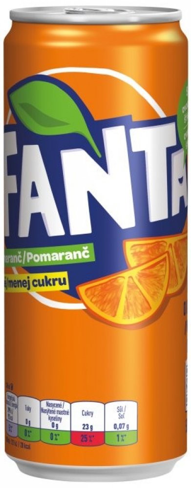 Co tomu říká sám dodavatel?Pomeranč. Limonáda s pomerančovou příchutí.Fanta byla prvním nealkoholickým nápojem po nápoji Coca-Cola, kterou The Coca-Cola Company začala distribuovat. Původní Fantu s pomerančovou příchutí vyvinula za války v roce 1941 dceřiná společnost v Německu, kdy stroje, suroviny ani koncentrát potřebný k výrobě nápoje Coca-Cola nebyly k dispozici. Po několika letech výroby v Německu byl v roce 1955 v italské Neapoli jménu vdechnut nový život. Ve Spojených státech byla Fanta uvedena na trh v roce 1960. Od té doby se jméno tohoto nealkoholického nápoje pomerančové chuti rozšířilo na více než 120 různých ovocných příchutí. Nápoj oblíbený většinou mezi mladší generací je k dostání v téměř 200 zemích.V okruhu mladých je dnes Fanta po celém světě známá jako „chutný“ a „zábavný“ nápoj. V České republice je dnes kromě Fanty pomeranč velmi populární i Fanta citrus mix, která je směsí šťávy z pomerančů, mandarinky, grepu, limetky a citronu. A jako poslední novinka byla na český trh uvedena příchuť Fanta lesní plody. Společnost v posledních letech intenzivně sleduje nové trendy spojené se zdravým životným stylem, a proto přicházíme s novým složením Fanty, která je: bez přidaných konzervačních látek díky využívání nejnovějších výrobních technologií, bez přidaných umělých aromatických látek a barviv, protože pomerančová šťáva a výtažek z pomerančů spolu se směsí karotenu přispívají k výsledné barvě nápoje, s přírodní ovocnou šťávou.Co byste měli vědět?Toto balení 330 ml obsahuje: Energetická hodnota 122 kcal 6%*, Cukr 30g 33%*, Tuky 0g 0%*, Nasycené mastné kyseliny 0g 0%* Sodík 0 g 0%*. *GDA - % doporučeného denního množství pro dospělé (založené na obsahu 2000 kcal v denní výživě). Případné usazeniny jsou přírodního původu a nemají žádný vliv na kvalitu výrobku.Bez konzervačních látek.Jak skladovat a používat?Uchovávejte v chladu a suchu. Nevystavujte přímému slunečnímu světlu.Nejlepší ledově vychlazená.