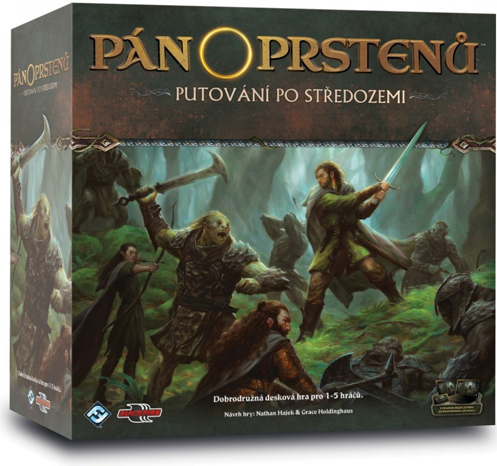 Pán prstenů: Putování po Středozemi je kooperativní hra pro jednoho až pět hráčů. Během hry se skupina hrdinů vydává vstříc nebezpečným dobrodružstvím, aby společně prozkoumávali a přežili v obrovském epickém fantasy světě J.R.R. Tolkienova Pána prstenů. Při svém putování budou čelit mocným protivníkům, objevovat ztracené poklady, odhalovat dávno zapomenuté znalosti a upravovat dovednosti podle rolí v jejich Společenstvu. Temnota povstává, zlo sílí, stín a zkaženost se rozšiřují. Je nejvyšší čas, aby se hrdinové vydali na své putování po Středozemi. Každá hra Pána prstenů: Putování po Středozemi představuje jedno dobrodružství velké kampaně. Během každého dobrodružství se hrdinové pokouší splnit sérii úkolů dříve, než je přemůže zlo rozpínající se po Středozemi. Hrdinové postupují kampaní bez ohledu na výsledky jednotlivých dobrodružství. Nakonec, po dokončení série dobrodružství, dosáhne kampaň svého závěru, který skončí buď úspěchem, nebo neúspěchem celé družiny hrdinů. Hra Pán prstenů: Putování po Středozemi vyžaduje, aby si jeden z hráčů do vhodného zařízení stáhl bezplatnou aplikaci Journeys in Middle-earth. Aplikace určuje výzvy a obsah, se kterým se hráči během hry setkají, od umísťování mapových dílů a žetonů, až po chování nepřátel. Aplikace také hráčům umožňuje svůj postup ve hře uložit. Díky tomu mohou kampaň dokončit během několika herních sezení. Aplikaci Journeys in Middle-earth lze volně stáhnout z některého z následujících obchodů: Amazon™ Appstore, Apple iOS App Store™, Google Play™nebo Steam®. Pokaždé, když se hráči pustí do dobrodružství, aplikace Putování po Středozemi toto dobrodružství vyplní obsahem vybraným z mnoha možností. Stejné dobrodružství se bude v mnoha ohledech lišit: velikostí a rozložením mapy, střetnutími s nepřáteli i obyvateli, událostmi, které hrdiny potrápí, a mnoha dalšími. Díky tomu mohou hráči při stejné kampani zažít pokaždé jiné příběhy. Obsah balení: 1 přehled pravidel o 1 pravidla hry o 22 oboustranných mapových dílů o 28 karet zranění o 6 karet hrdinů o 83 karet předmětů o 15 karet výhod o 2 oboustranná bojiště o 21 karet titulů o 30 karet základních dovedností o 30 karet dovedností hrdinů o 72 karet rolí o 20 karet slabostí o 10 karet terénu o 31 plastových figurek o 30 žetonů terénu o 12 praporů nepřátel o 12 plastových podstavců o 84 herních žeton UPOZORNĚNÍ: Obsahuje malé části, může způsobit zadušení. Použitý obal odhoďte do koše.