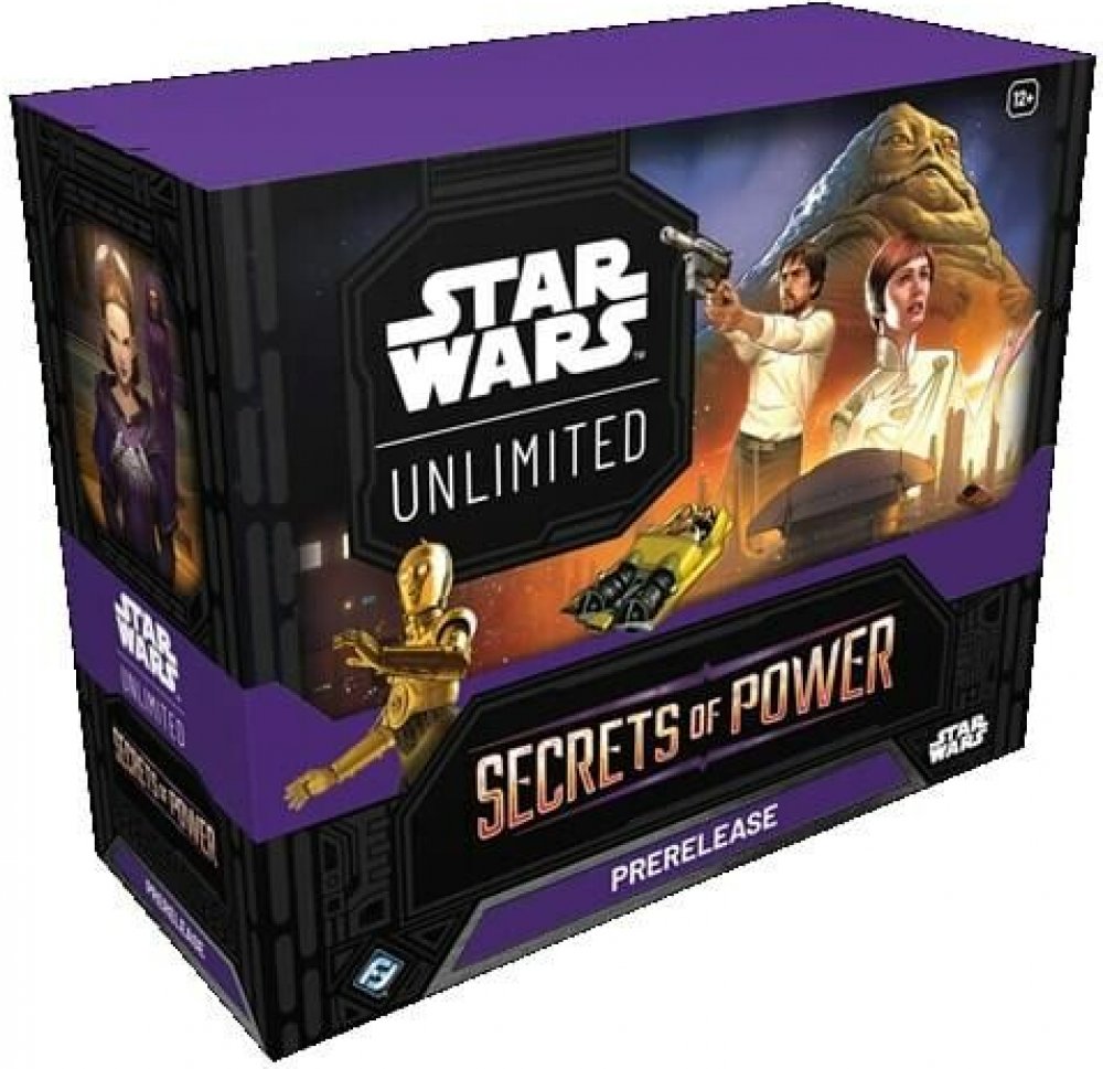 Star Wars: Unlimited TCG - Secrets of Power - Prerelase Box obsahuje 6x booster balíčků, 2 Prerelease Promo cards, kartónové ženony a krabičku.