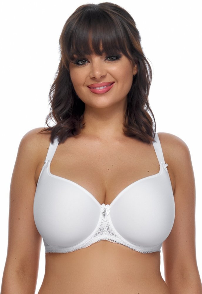 Dámská podprsenka značky Fantasy. Díky použitému 3D spacer materiálu (trychtýřkovitému zpracování materiálu) je tato podprsenka lehká, vzdušná a výborně odvádí pot od těla a přitom se budete cítit absolutně pohodlně a svěže. Pevně všitá ramínka jsou lehce délkově nastavitelná. Kolem spodní části košíčků je našitá krajka a mezi košíčky je stříbrná aplikace se štrasovým kamínkem. Jemné košíčky zpevňuje uvnitř boční výztuž. Vyšší střed i obvod dokonale podrží i větší poprsí. Zadní zapínání je na dva háčky a dvě pozice.