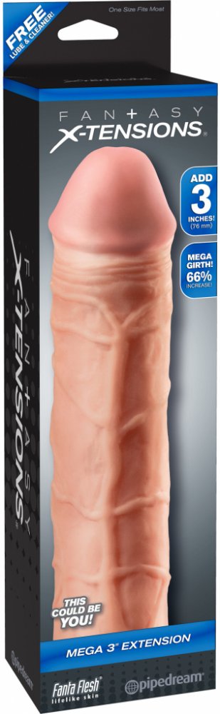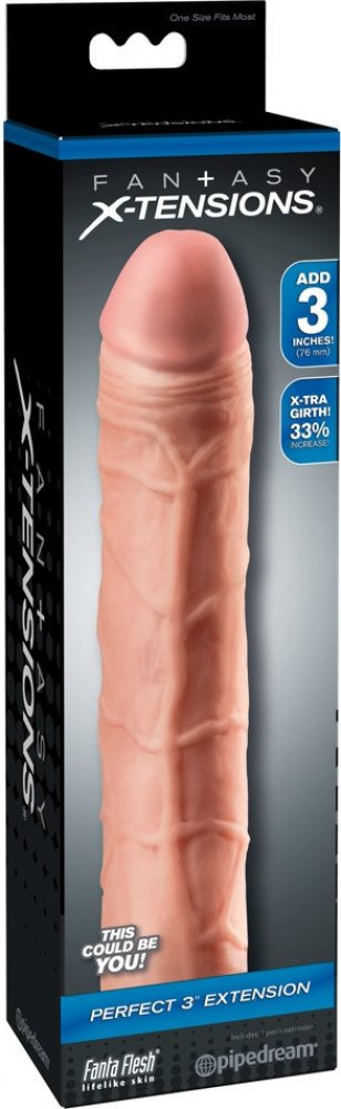 Perfect 3" Extension je přizpůsobitelný návlek, jehož délku lze snadno upravit tak, aby perfektně padl. Je velmi pružný, aby se přizpůsobil každé velikosti a dostatečně pohodlný, pro vaši delší výdrž. Váš partner si bude užívat hlubší penetraci s prodloužením 3" (7,6 cm) na špičce, zatímco ultra-realistické tělo přidá 33% obvodu vašeho penisu. Měkký materiál Fanta Flesh pocítíte jako Vaši druhou kůži, která vám přidá délku, obvod, a důvěru, potřebnou pro uspokojení vaší drahé polovičky.