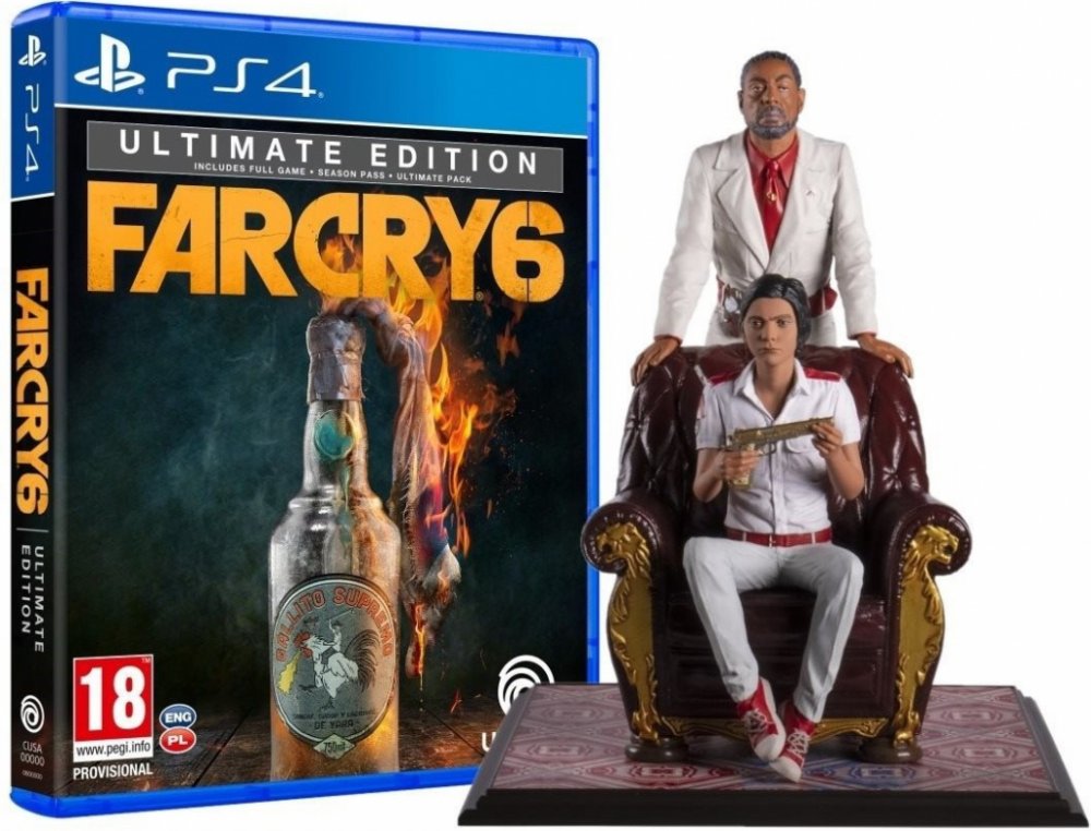 Far Cry® 6 Ultimate Edition obsahuje hru, Season Pass a Ultimate Pack. Ultimate Pack: Vice Pack obsahuje oblek „Vice Outfit“, samopal „Vice Skorpion“, vozidlo „Warden Pinnacle“, talisman pro zbraň „Gold Brick“, doplněk pro vozidlo „Letter Opener“ a úžasného, leč nebezpečného bílého pantera „Champagne“. Croc Hunter Pack obsahuje oblek „Croc Hunter outfit“, pušku „45/70“, talisman pro zbraň „Crocodi...