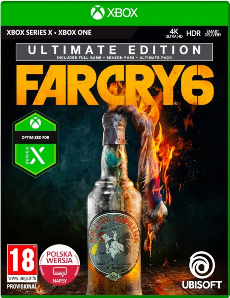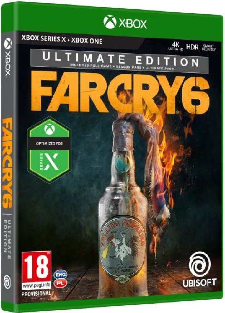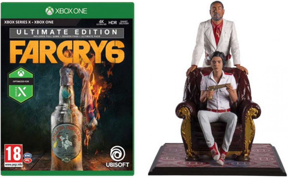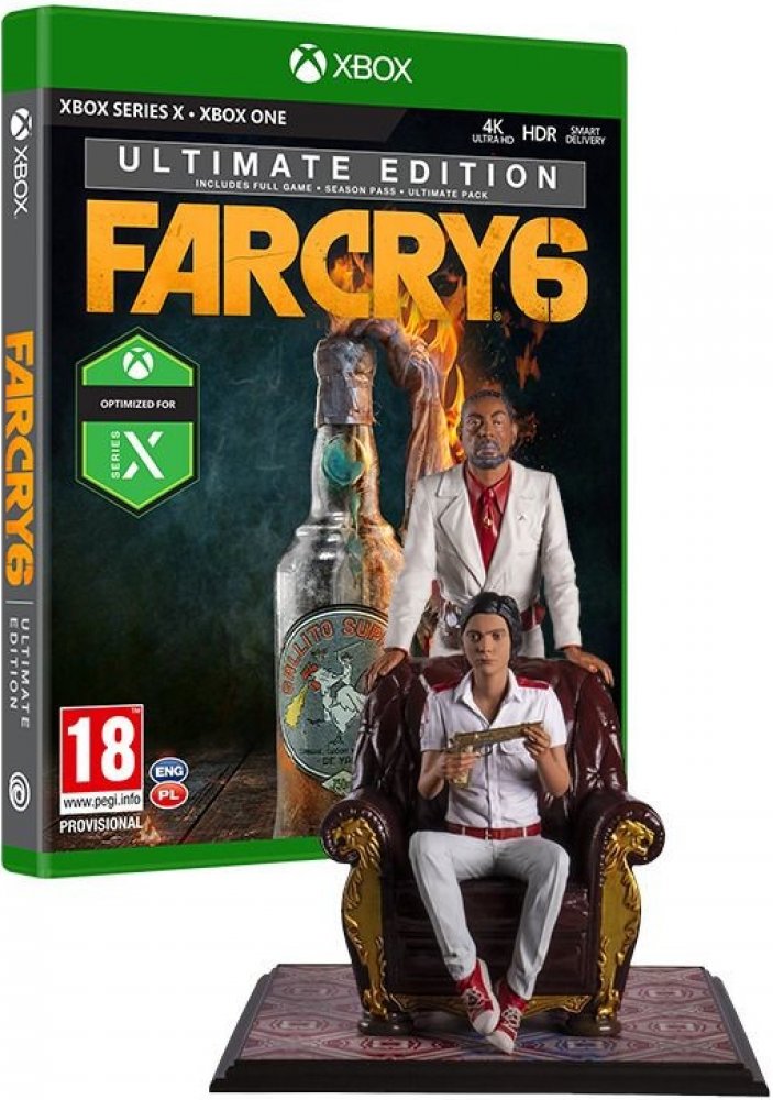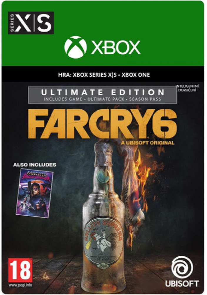 Far Cry® 6 Ultimate Edition obsahuje hru, Season Pass a Ultimate Pack.Ultimate Pack: Vice Pack obsahuje oblek „Vice Outfit“, samopal „Vice Skorpion“, vozidlo „Warden Pinnacle“, talisman pro zbraň „Gold Brick“, doplněk pro vozidlo „Letter Opener“ a úžasného, leč nebezpečného bílého pantera „Champagne“. Croc Hunter Pack obsahuje oblek „Croc Hunter outfit“, pušku „45/70“, talisman pro zbraň „Crocodile Tooth“ a doplněk pro vozidlo „45/70 cartridge“. Jungle Expedition Pack obsahuje oblek „Jungle Expedition Outfit“, zbraň „SBS“ a talisman pro zbraň „Compass“.