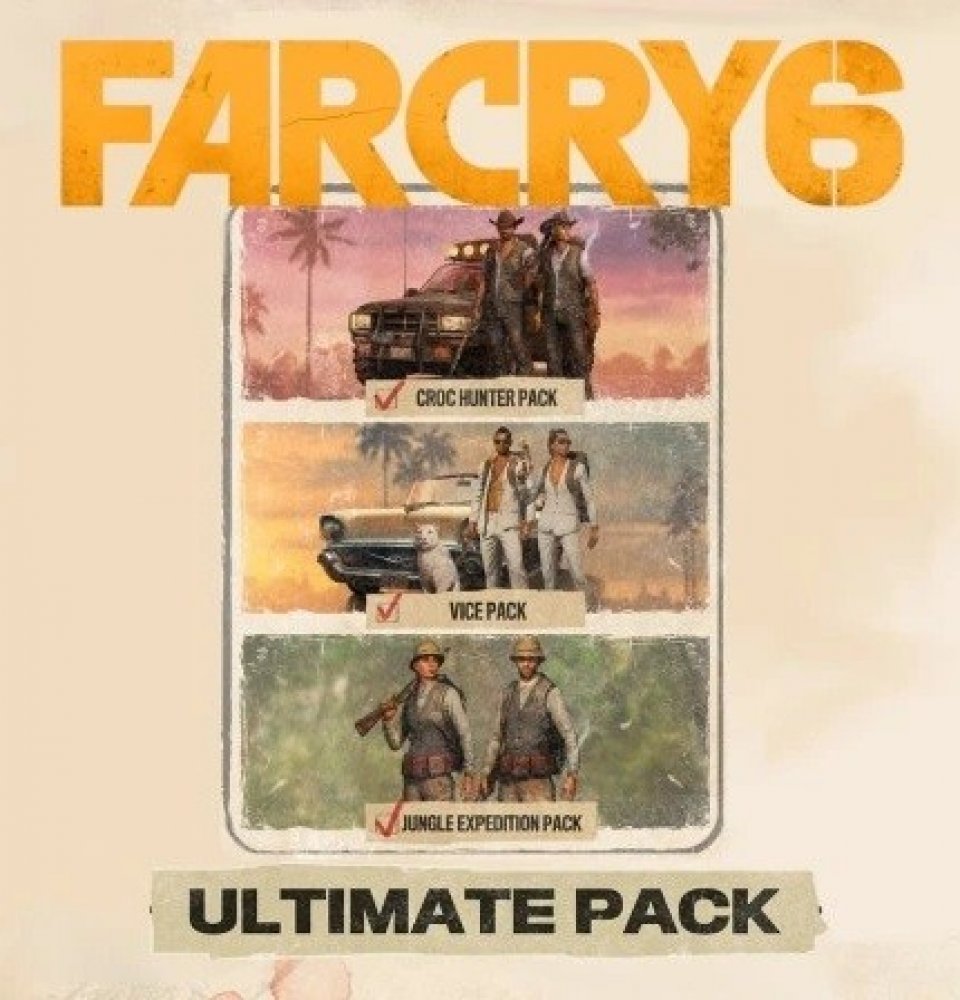 Jedná se o dodatek a je nutné vlastnit základní hru Far Cry 6 v platformě Playstation!Balíček Ultimate obsahuje:Far Cry® 6 Season Pass obsahuje tři DLC s vašimi oblíbenými darebáky Far Cry® a ikonickou klasickou edicí Far Cry® 3 Blood Dragon.The Jungle Expedition Pack: Vydejte se na dobrodružství svěží džunglí Yary jako Lost Explorer.Oblečení „Dobrodruh“zbraň „SBS“Kouzlo zbraně „Kompas“Balíček Croc Hunter: Ponořte se do dosud největšího hřiště Far Cry jako legendární Croc Hunter.Oblečení „Bushwhacker“zbraň „45/70“,Terénní vozidloKouzlo zbraně „Croc Tooth“Příslušenství vozidla „45/70 Cartridge“The Vice Pack: Bojujte s Antonovými vojsky rozlehlými ulicemi Esperanzy stylově."" Miami Strip "" oblečeníZbraň „Skorpion“Kabriolet"" Gold Bullion "" kouzlo zbraní"" Příslušenství vozidla "" Otvírač dopisů ""„Champagne“, elegantní, ale smrtící společník bílého pantera