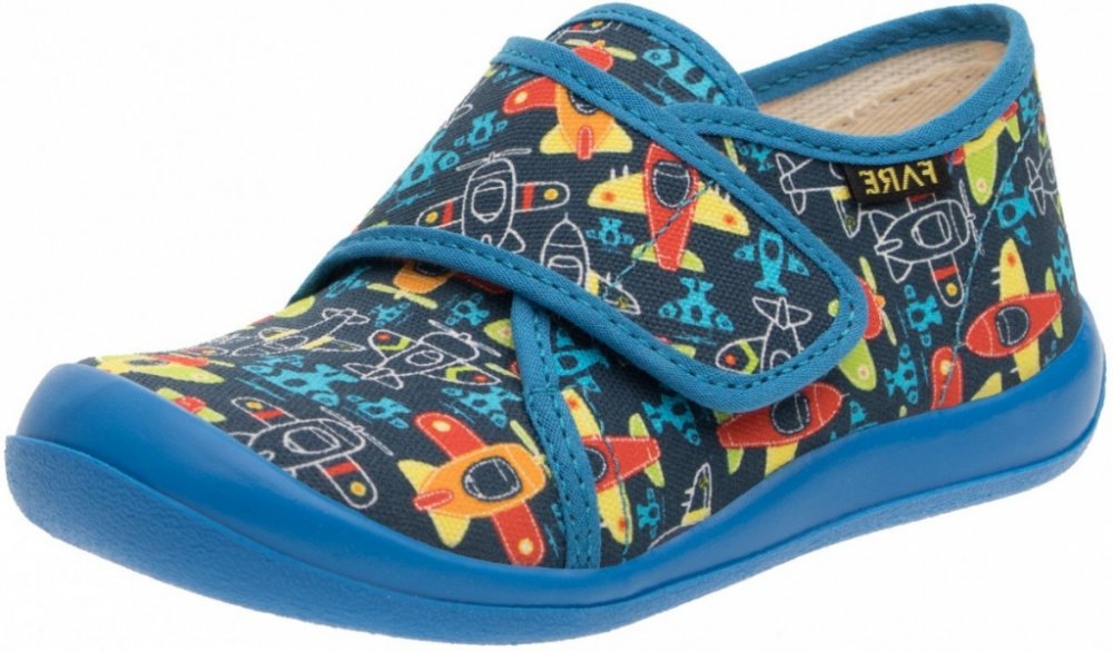 Přezůvková, kotníčková, textilní, lemovaná obuv na suchý zip. Materiál svršku je z barevného pracího kordu, vnitřek je z bavlněného kepru. Podešev je vyvinuta jako odlehčená, materiál podešve z termoplastického elastomeru, je neklouzavá pro všechny běžně používané podlahoviny. Tato domácí a přezůvková obuv odpovídá ortopedickým požadavkům a zásadám zdravého obouvání. Obuv je v prstové části prosto...