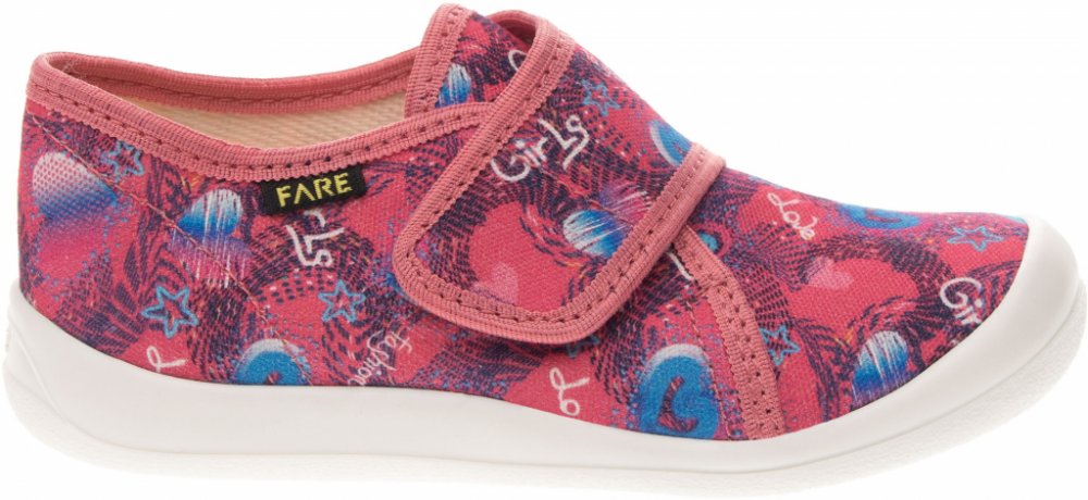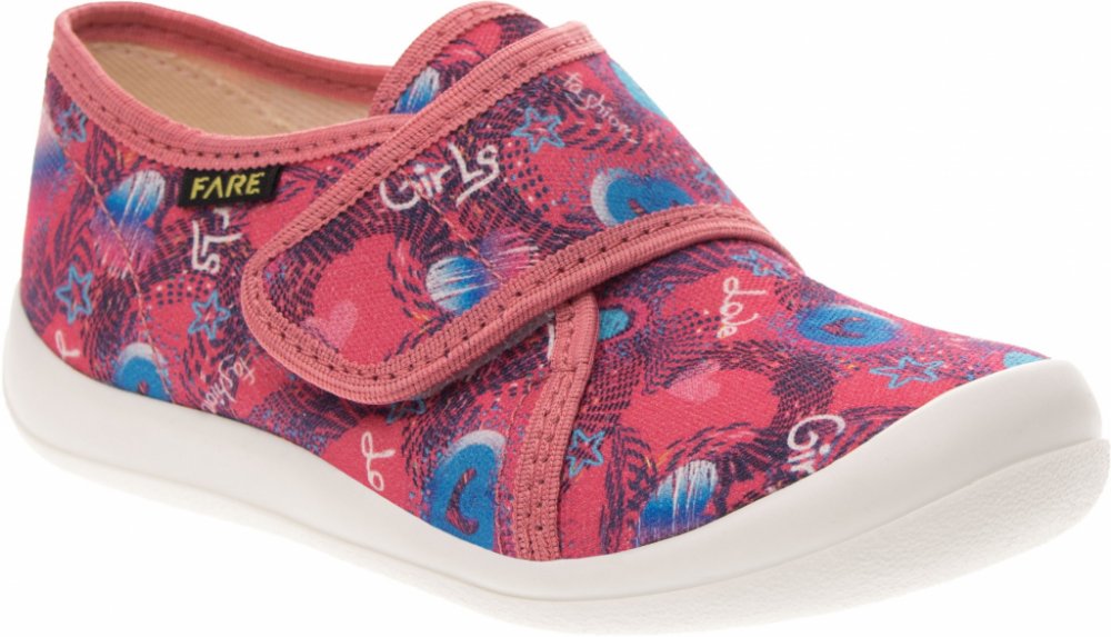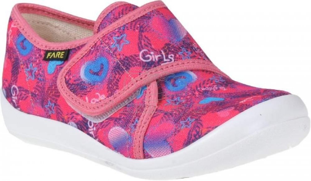 Přezůvková, nízká, textilní, lemovaná obuv, na velcro. Materiál svršku je z barevného pracího kordu, vnitřek je z bavlněného kepru. Podešev je vyvinuta jako odlehčená, materiál podešve z termoplastického elastomeru, je neklouzavá pro všechny běžně používané podlahoviny. Tato domácí a přezůvková obuv odpovídá ortopedickým požadavkům a zásadám zdravého obouvání. Obuv je v ...