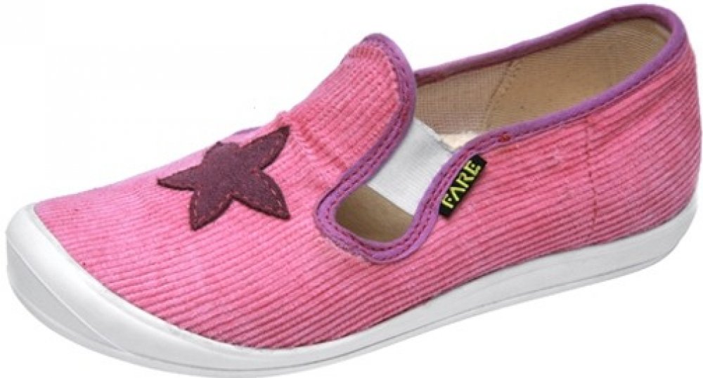 Přezůvková, nízká, textilní, lemovaná obuv, pruženkové uzavírání. Materiál svršku je z barevného pracího kordu, vnitřek je z bavlněného kepru. Podešev je vyvinuta jako odlehčená, materiál podešve z termoplastického elastomeru, je neklouzavá pro všechny běžně používané podlahoviny. Tato domácí a přezůvková obuv odpovídá ortopedickým požadavkům a zásadám zdravého obouvání. Obuv je v prstové části pr...