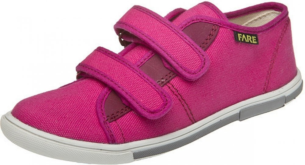 Textilní obuv se zapínáním na suché zipy. Dětské textilní boty FARE na velcro pásky, maximálně ohebná a prodyšná. Svršek obuvi je z bavlněného, olemovaného textilu. Předností je vyjímatelná vkládací stélka, pevný opatek i špice a podešev z termoplastického kaučuku.
