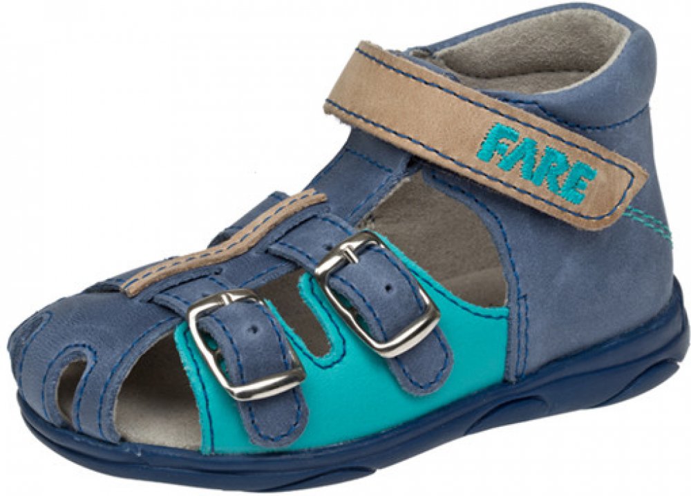 Sandálková obuv, zapínání na suchý zip. Vrchový materiál - pravá kůže hladká. Podšívka - pravá kůže. Podešev je z termoplastického kaučuku. Předností je vypolstrovaná stélka, částečně uzavřená špice, regulovatelnost obuvi přes nárt, pevný opatek a výška paty - v tomto věku dítěte velmi důležitá.