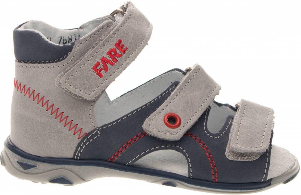Sandálková obuv bez špice se zapínáním na velkro. Vrchový materiál – pravá kůže - nubuk v kombinaci s kůží hladkou . Podšívka – pravá kůže. Podešev je z termoplastického kaučuku. Předností je vypolstrovaná stélka, regulovatelnost obuvi přes nárt, pevný opatek a výška paty, která je v souladu s podmínkami zdravého obouvání. Délka stélky: vel. 23 - 149 mm vel. 24 - 155 mm vel. 25 - 162 mm vel. 26 - 169 mm