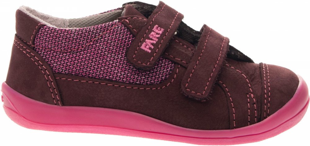 Celoroční, vycházková obuv, nízká se zapínáním na velcro. Vrchový materiál – pravá kůže broušená v kombinaci s textilem. Podšívka - textilní s výbornými sacími schopnostmi. Podešev je z termoplastického kaučuku s módním dezénem. Předností je měkká výplň límečku, vyjímatelná vkládací stélka a pevný opatek i špice.