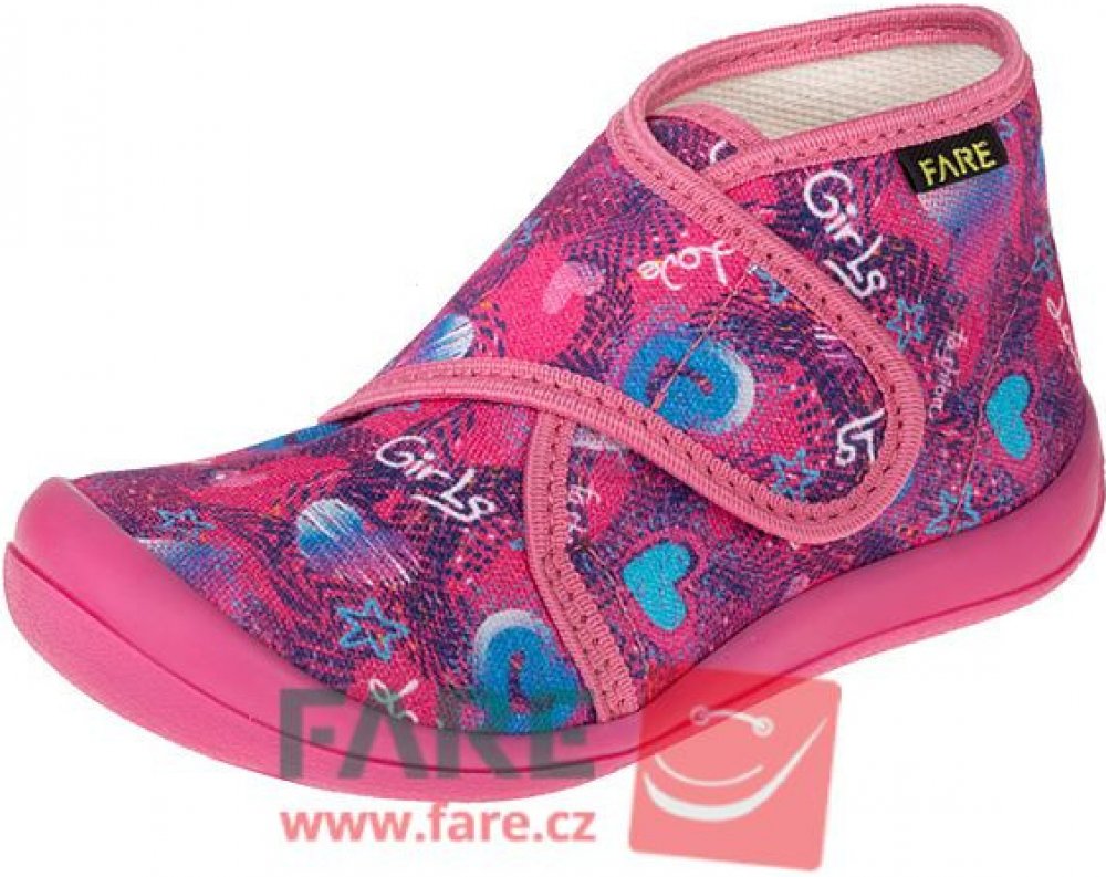 Fare růžová na suchý zip dívčí bačkory textilie