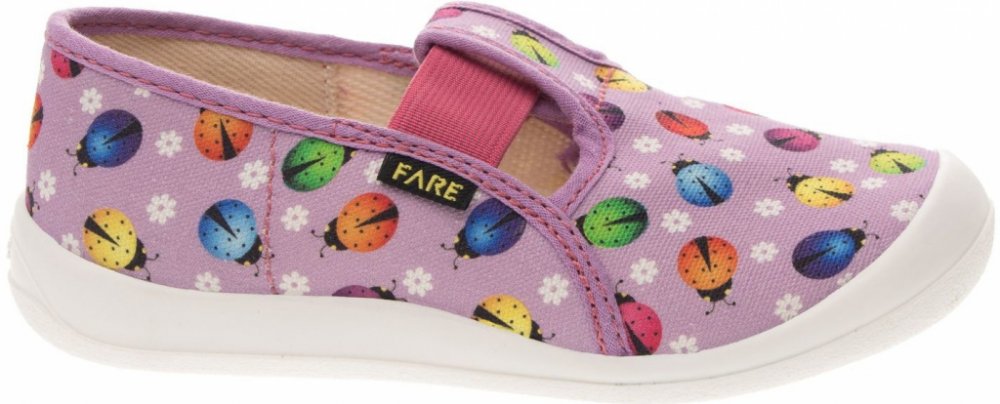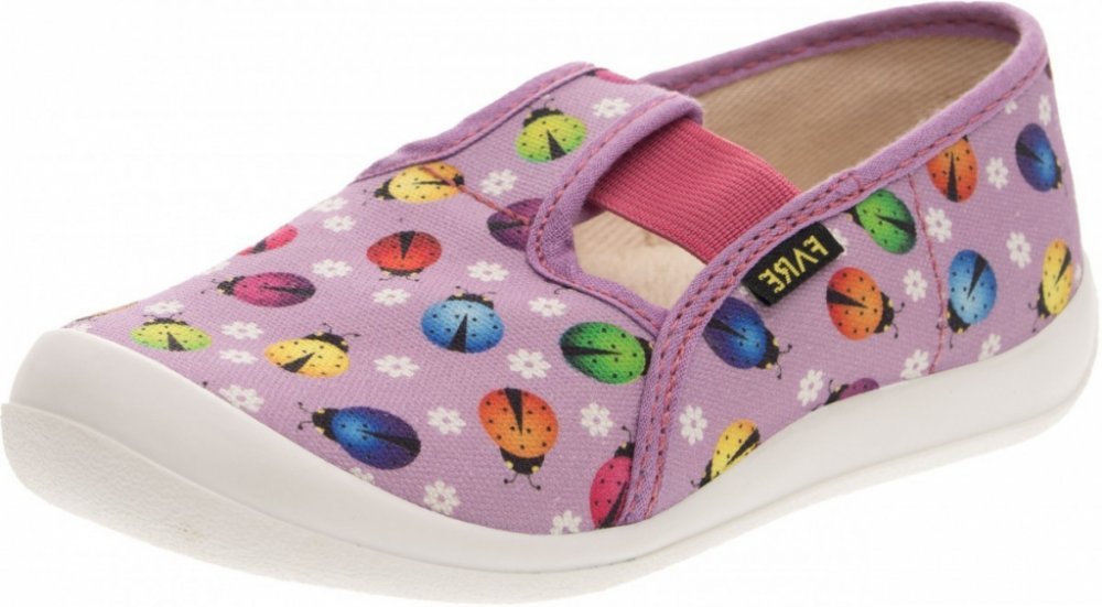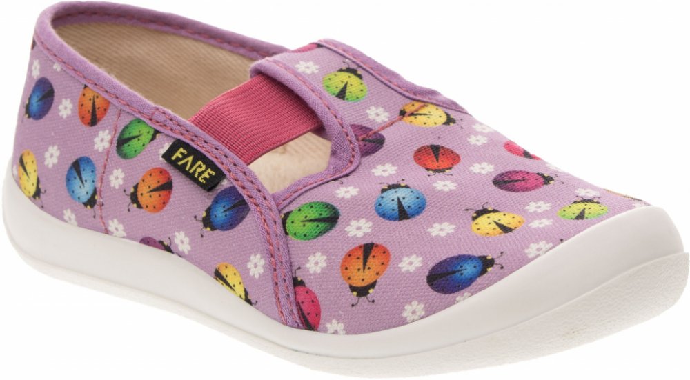 Dívčí bačkory Fare, berušky. Materiál svršku je z barevného pracího kordu, vnitřek je z bavlněného kepru. Podešev je vyvinuta jako odlehčená, materiál podešve z termoplastického elastomeru, je neklouzavá pro všechny běžně používané podlahoviny. Tato domácí a přezůvková obuv odpovídá ortopedickým požadavkům a zásadám zdravého obouvání. Obuv je v prstové části prostorově vytvarována, je vybavena pev...
