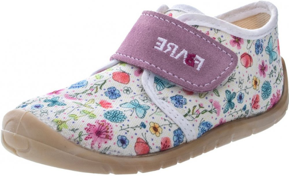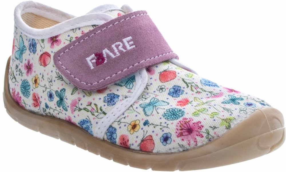 Plátěné papučky od českého výrobce FARE bare na široké nožky pro začínající chodce.