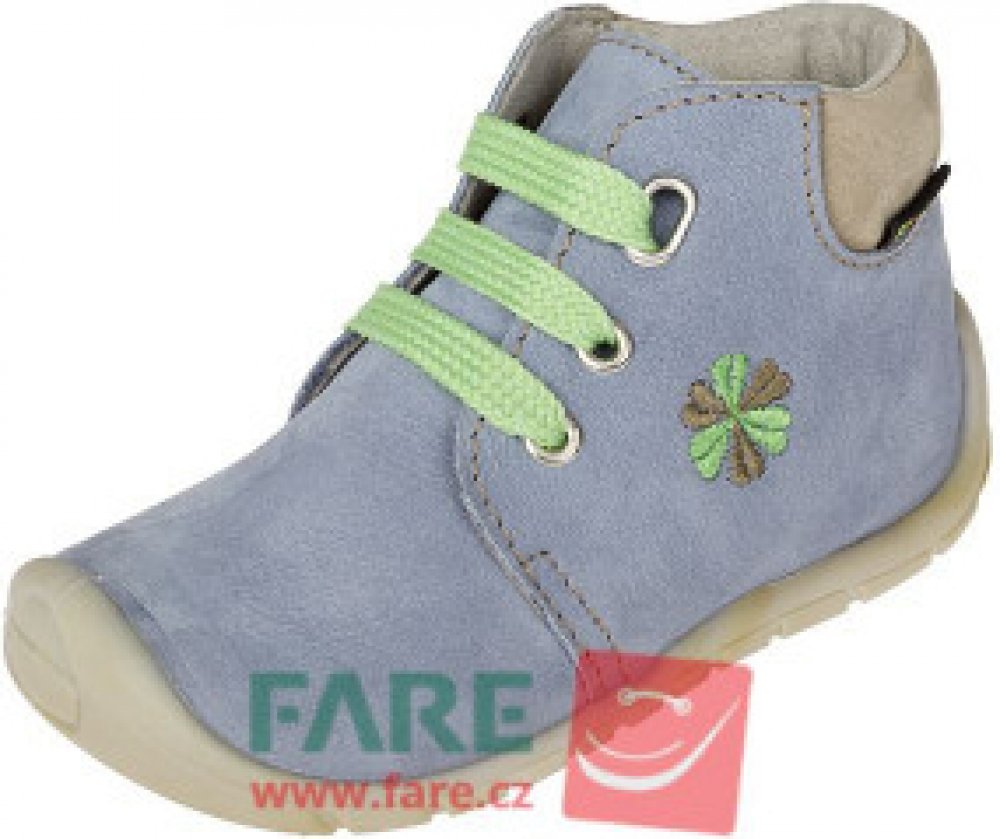Svršek z pravé hovězinové kůže typu nubuk působí příjemně na dotek a zároveň je vhodný pro běžné celoroční nošení. Obuv je lehká, pohodlná a dobře se přizpůsobí dětské noze při každodenních aktivitách.