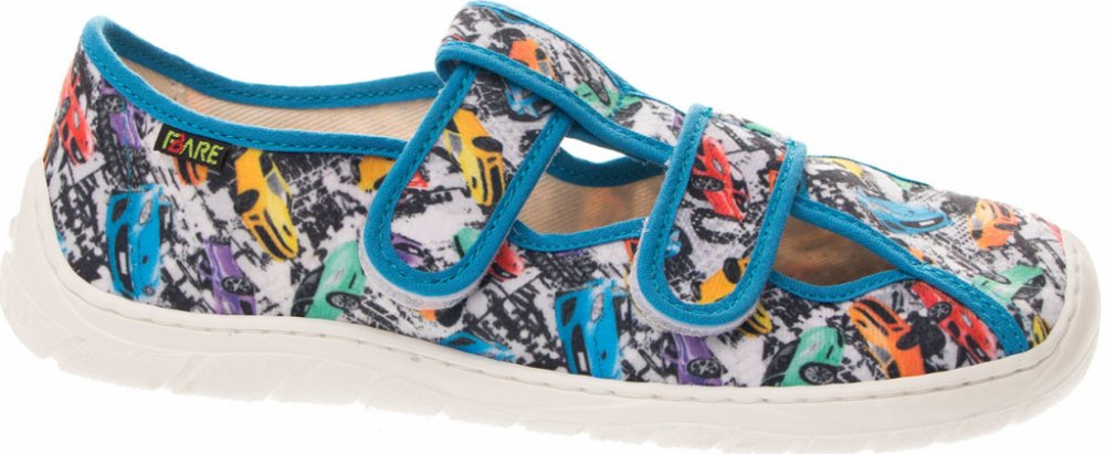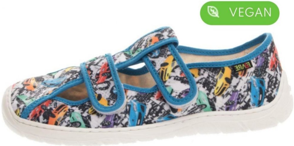 Dětská domácí/přezůvková štróblovaná obuv na suchý zip. Našívací (štróblovaná) stélka umožňuje lepší ohyb boty. Vrchový materiál: textil. Podešev je vyrobena z termokaučuku, který je velmi flexibilní příčně, ale i podélně.Modely typové řady FARE BARE se odlišují od běžné klasické produkce především výrazně větším prostorem v prstové části. Mají ambici neomezovat vývoj nohy zejména v přední části chodidla, kde poskytují mnohem větší prostor. Vynikají také svojí lehkostí a vysokou flexibilitou.Tyto modely FARE BARE jsou vybaveny dvěma vkládacími stélkami. Horní stélka je funkčně i vzhledově obdobou klasického provedení. Druhá - spodní stélka má za úkol umožnit uživateli doregulovat si potřebný prostor uvnitř obuvi. Velmi snadno se v případě potřeby odstraní nebo naopak doplní o další vrstvu. Odstraněním jedné vrstvy stélek je možné prostor zvětšit.Více informací o tom, jak zvolit správnou velikost se dozvíte ZDE.