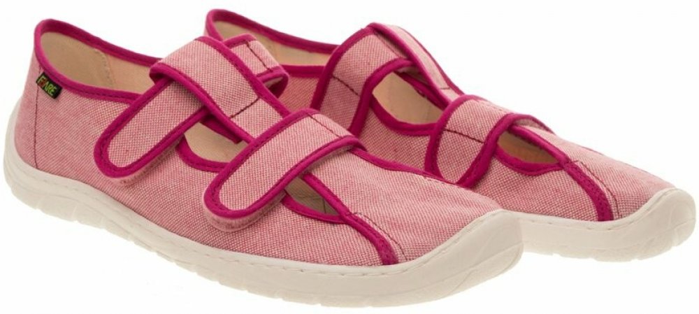 Dětská domácí/přezůvková štróblovaná obuv na suchý zip. Našívací (štróblovaná) stélka umožňuje lepší ohyb boty. Vrchový materiál: textil. Podešev je vyrobena z termokaučuku, který je velmi flexibilní příčně, ale i podélně.Modely typové řady FARE BARE se odlišují od běžné klasické produkce především výrazně větším prostorem v prstové části. Mají ambici neomezovat vývoj nohy zejména v přední části chodidla, kde poskytují mnohem větší prostor. Vynikají také svojí lehkostí a vysokou flexibilitou.Tyto modely FARE BARE jsou vybaveny dvěma vkládacími stélkami. Horní stélka je funkčně i vzhledově obdobou klasického provedení. Druhá - spodní stélka má za úkol umožnit uživateli doregulovat si potřebný prostor uvnitř obuvi. Velmi snadno se v případě potřeby odstraní nebo naopak doplní o další vrstvu. Odstraněním jedné vrstvy stélek je možné prostor zvětšit.Více informací o tom, jak zvolit správnou velikost se dozvíte ZDE.