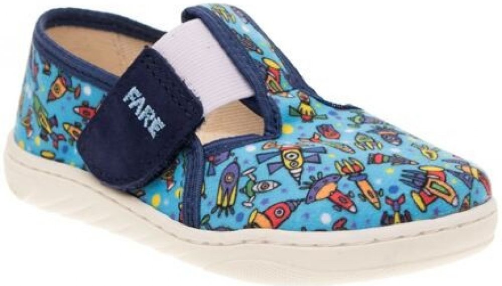 Přezůvky FARE WIDE jsou vyhovující i pro vyznavače barefoot obouvání. V případě potřeby je možno tvarovanou stélku vyměnit za stélku rovnou. Bačkory poskytují výrazně větší prostor v oblasti prstů. Flexibilní podešev je ohebná ve všech směrech. vyjímatelnou stélku s podporou klenby lze vyměnit za rovnou, která je součástí výrobku (pro barefoot obouvání) rovnou stélkou lze zároveň doregulovat vnitřní prostor v botě, pokud je volná v nártové části (vložit pod stélku s klenkem - klasické obouvání) opatek je velmi mírně vyztužen, zapínání na suchý zip střih vhodný pro střední i vyšší nárt, pro průměrný kotník a patu bačkory nejsou vhodné pro úzké chodidlo flexibilní podešev 3 – 4 mm vrchní materiál textil