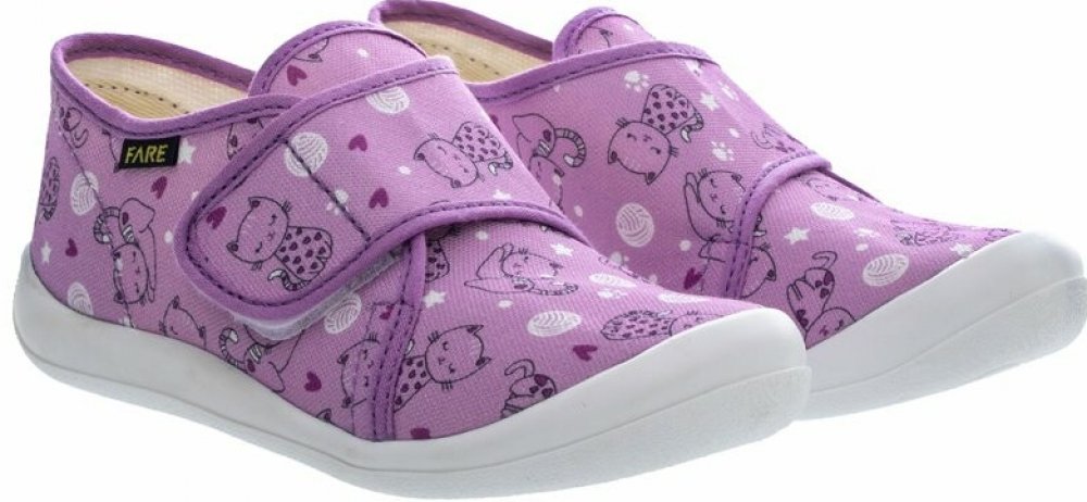 FARE KLASIK dívčí pantofle v elegantní fialové (lila) barvě jsou ideální volbou pro domácí nošení i jak přezůvky do školy a školky. Vyrobeno z odolného barevného pracího kordu s vnitřkem z příjemného bavlněného kepru, který zajišťuje dostatečnou prodyšnost a pohodlí během celého dne.