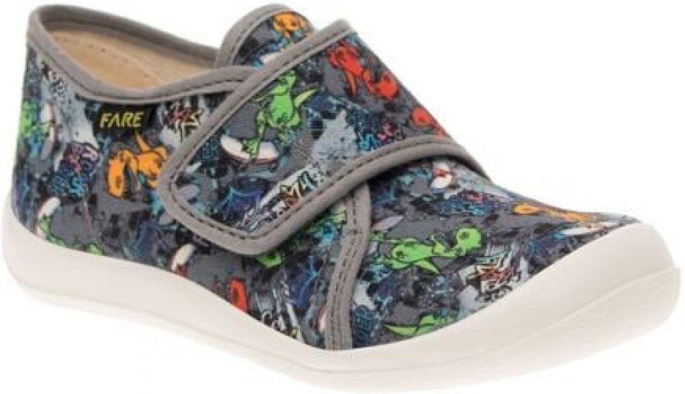 Oblíbené české dětské bačkůrky s dinosaury a zapínáním na suchý zip. domácí přezůvky jsou vyrobeny z barevného pracího kordu, vnitřek je z bavlněného kepru obuv Fare je prostorná v prstové části a je vybavena pevným opatkem vkládací stélka má komfortní tlumící vrstvu a klenkovou podporu odlehčená pružná podešev z termoplastického elastomeru je neklouzavá přezůvková obuv odpovídá ortopedickým požadavkům a zásadám zdravého obouvání