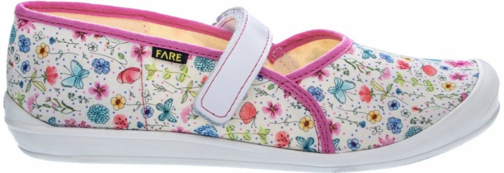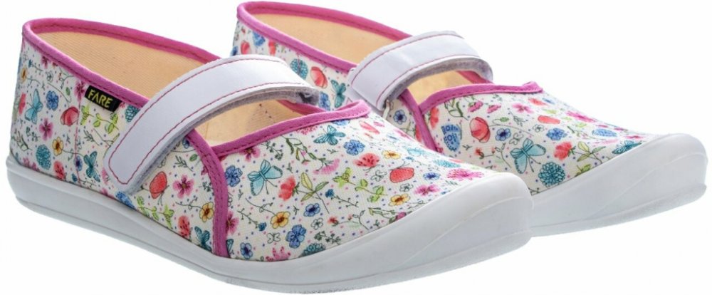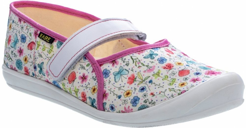 Fare bílá na suchý zip dívčí bačkory textilie kytičky
