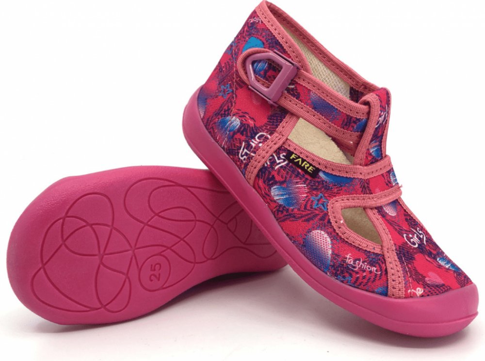 Přezůvková, kotníčková, textilní, lemovaná obuv, na přezku. Materiál svršku je z barevného pracího kordu, vnitřek je z bavlněného kepru. Podešev je vyvinuta jako odlehčená, materiál podešve z termoplastického elastomeru, je neklouzavá pro všechny běžně používané podlahoviny. Tato domácí a přezůvková obuv odpovídá ortopedickým požadavkům a zásadám zdravého obouvání. Obuv je v prstové části prostor...
