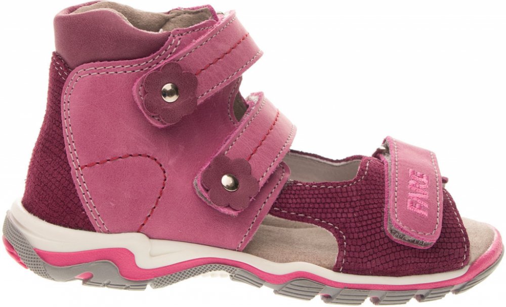 Sandálová obuv bez špice se zapínáním na velcro. Vrchový materiál - pravá kůže hladká. Podšívka -patní část a stélka je vyrobena z netkané textilie a přední boční díl z pravé kůže. Podešev je z termoplastického kaučuku. Předností je vypolstrovaná fuzbeta, regulovatelnost obuvi přes nárt, pevný opatek a výška paty, která je v souladu s podmínkami zdravého obouvání.