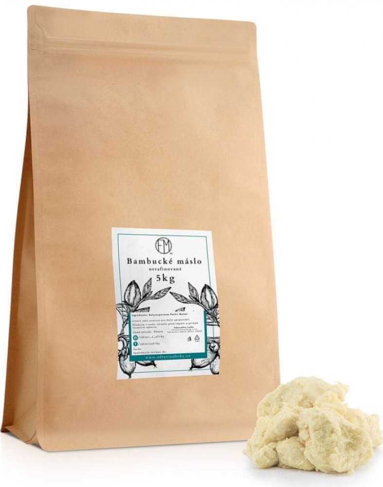 Toto velmi výhodné balení nerafinovaného bambuckého másla je vhodné na péči o pleť, celé tělo a na výrobu kosmetiky. Bambucké máslo se získává z jader oříšků posvátného afrického stromu Máslovníku Afrického.