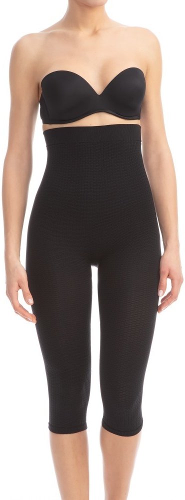 Polostehenní kalhoty s vysokým ohrnutým pasem. Vyrobeno z inovativního vlákna NILIT INNERGY, které využívá daleké infračervené paprsky (FIR) k jemnému prohřátí nejhlubších vrstev pokožky, čímž posiluje tělo a redukuje nedokonalosti způsobené celulitidou a tukovou tkání (1). Mírné teplo vyzařované vlákny pomáhá tvarovat postavu a redukovat „pomerančovou kůži“. Kromě toho produkty vyrobené z tohoto inovativního vlákna prokazatelně snižují tukovou hmotu, zpevňují pokožku a viditelně zmenšují obvod hýždí a stehen (1).