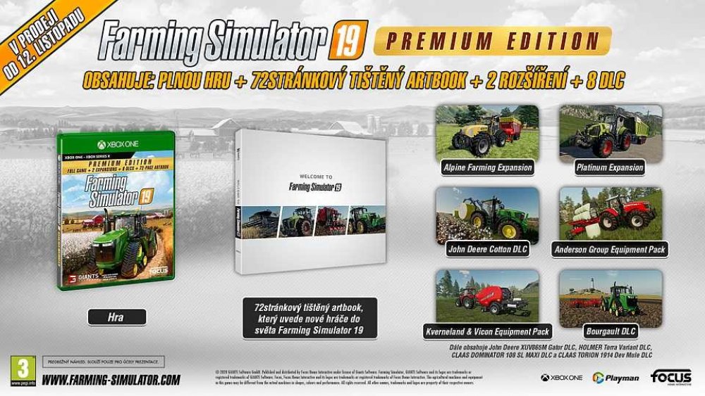 Premium Edition obsahuje veleúspěšnou hru Farming Simulator 19 a níže uvedený obsah: