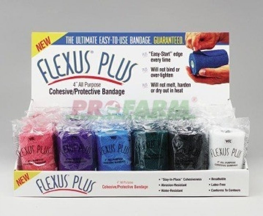 Easy Start” technologie umožňuje snadno nalézt začátek.Neškrtí a zabraňuje přílišnému utažením.Patentovaná 7-mi vrstvová struktura s dokonalou přilnavostí. Zůstává na místě bez padání a pohybu.Nerozpustí se, netvrdne, dýchá, nevysychá a je vodě odolná.Velmi pevná s ochranou před odíráním.NÁVOD: 1.Flexus® Plus aplikujte s 50-75% natažením. 2.Při dokončování obvazu neutahujte poslední ovinutí. Jednoduše obinadlo přiložte a uhlaďte. 3.Lepící páska může být přidána pro zvýšení fixace a upevnění obinadla, zejména když je venkovní teplota pod 45°F (7,2°C).