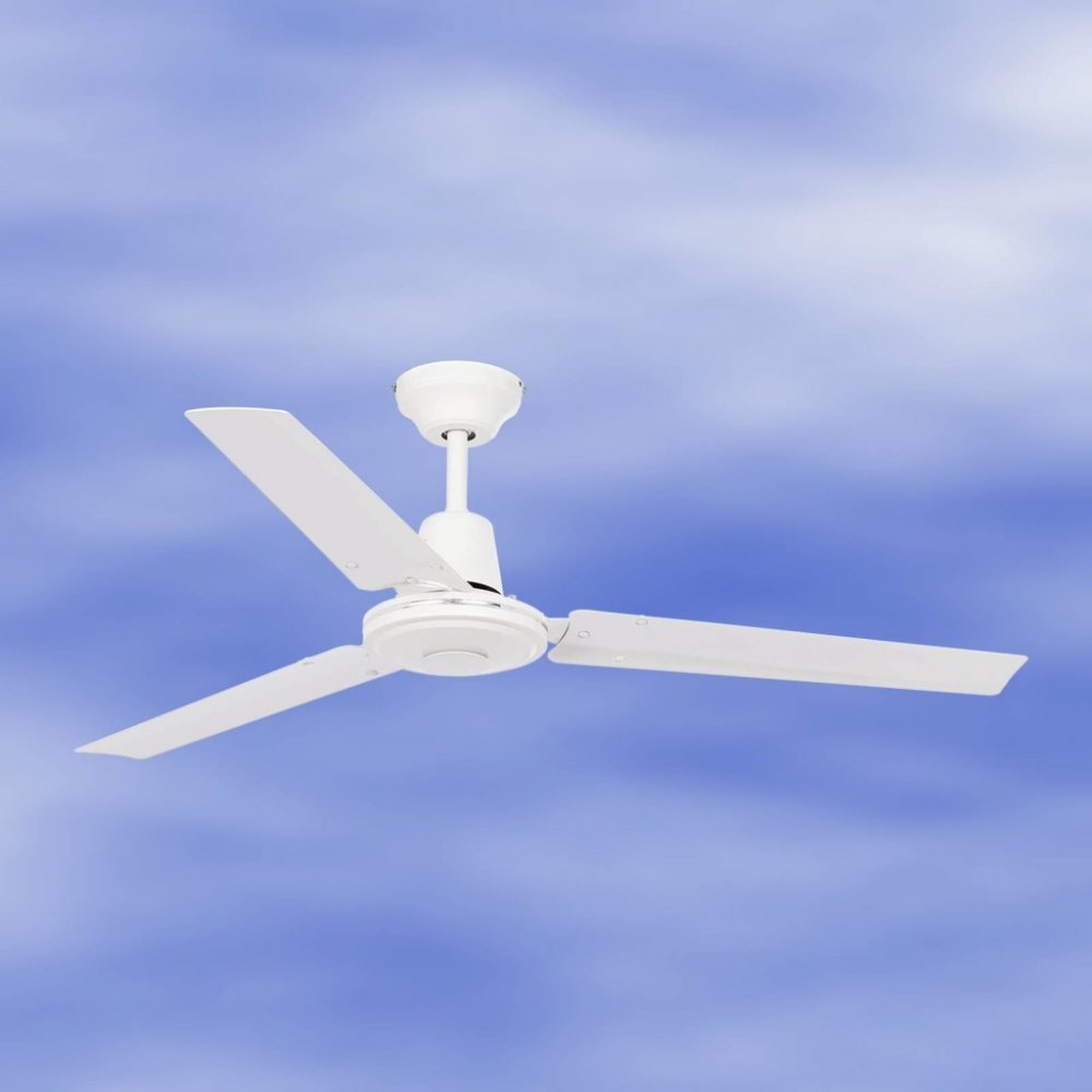 Stropní ventilátor bez osvětlení s nástěnným regulátorem rychlosti, který je součástí balení.