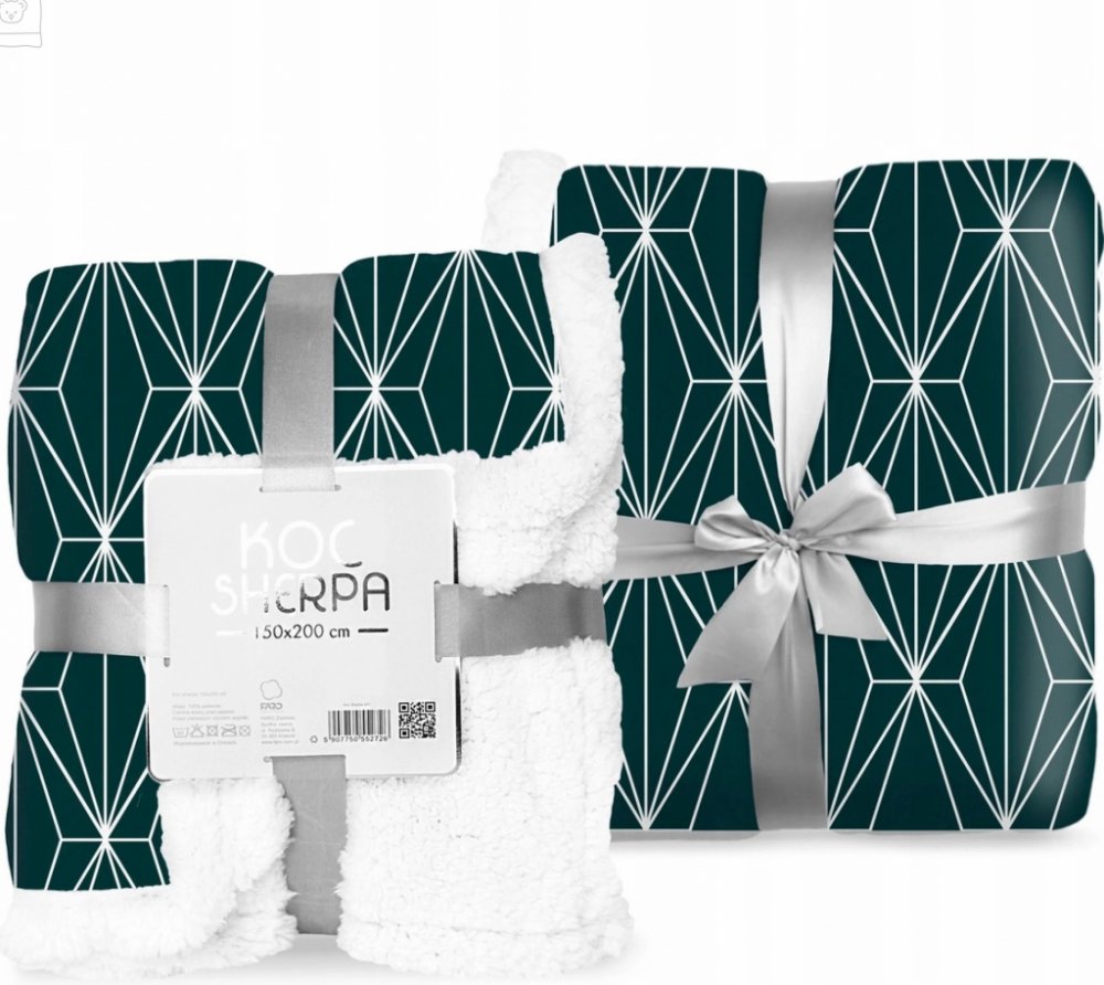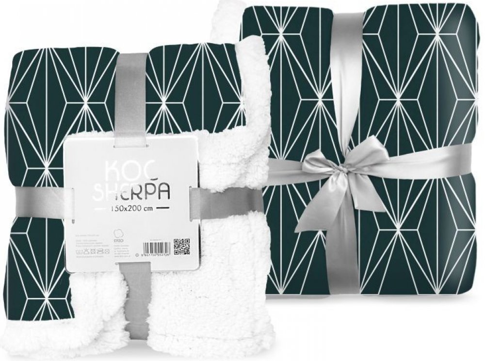 Fleece deka s potiskem na jedné straně a s imitací beránku na druhé straně. Deka geometrie tmavě zelená je velmi příjemná na omak, lehká a hřejivá. Deka s beránkem geometrie tmavě zelená je vyrobena ze 100% Polyesteru, možnost prát v pračce na 40°C
