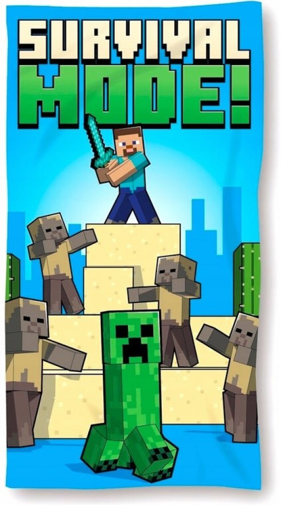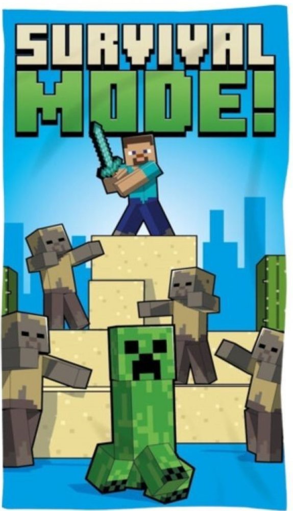 Osuška Minecraft je vyrobena ze 100% polyesteru - jemného měkoučkého mikrovlákna s vysokým chlupem, nemačká se. Plážová osuška Micro Minecraft Survival Mode v rozměru 70x140cm. Osuška Minecraft Survival Mode s jednostranným potiskem. Rychleschnoucí osuška Minecraft Survival Mode na pláž i do koupelny. Osuška Minecraft lze jen pověsit a je hned suchá...