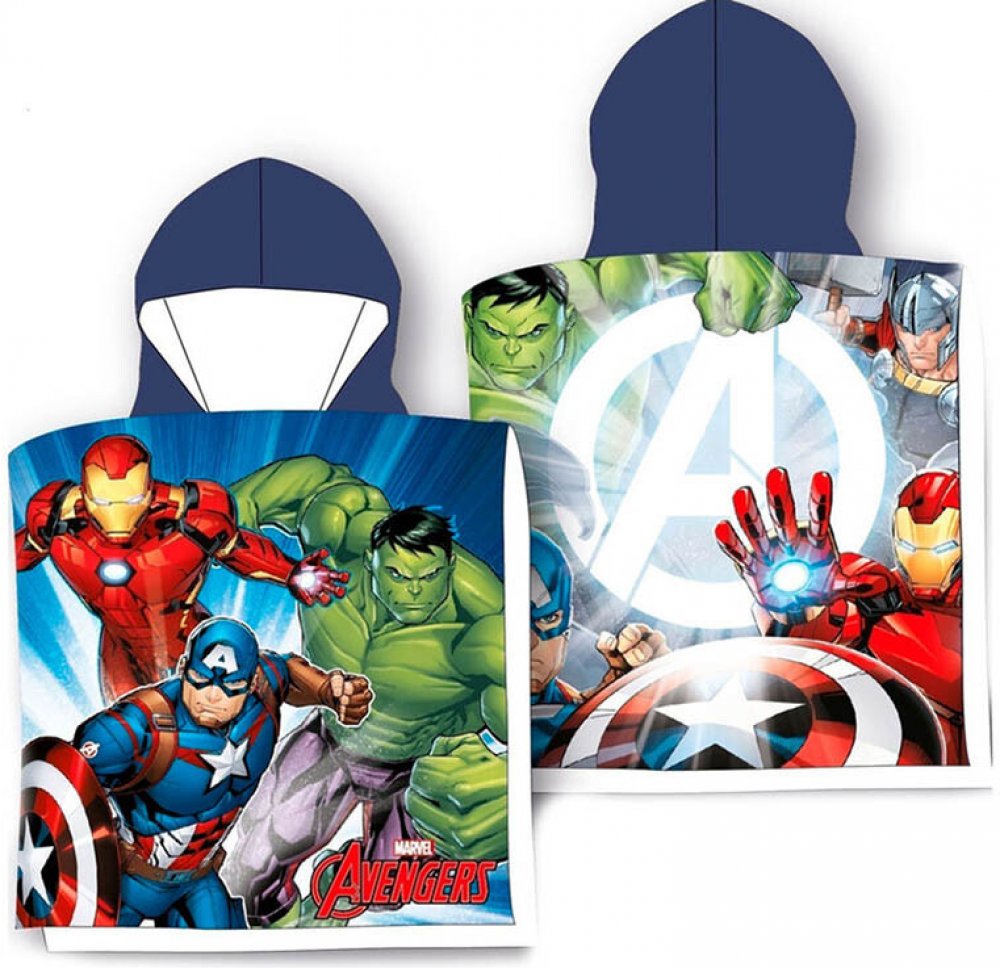 Dětské plážové pončo s Avengers hrdinami je ideálním prvkem k bazénu, které hravě nahradí klasickou osušku. Plážové pončo je laděné do modré barvy a je ušito z bavlněného froté s pestrobarevným tiskem z jedné stany. Z rubu jsou bílé froté smyčky s výbornou sací schopností. Pončo má univerzální velikost pro děti cca od 2-8 let.