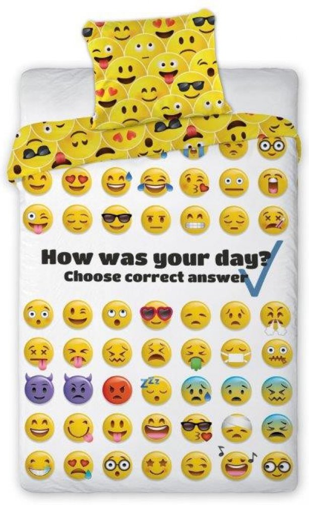 FARO Povlečení Emoji Bavlněné povlečení Emoji je milým doplňkem do dětského pokoje teenagerů, kde utvoří útulné místo pro spokojený spánek. Povlečení do velké postele je vyrobeno z příjemné bavlny, která bude svého majitele příjemně hýčkat. Z přední strany povlečení uvidí roztomilé barevné smajlíky kam až oko dohlédne. Zadní strana je odlišná s smajlíky, laděná do žluté barvy. Pokyny k údržbě: Pov...
