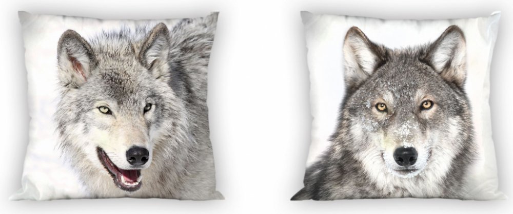 Potisk z obou stran: každá strana má jiný motiv s vlkem, pro větší variabilitu