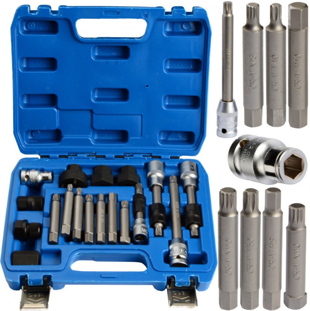 Sada obsahuje 18 dílů. Souprava 18 klíčů pro montáž a demontáž alternátorů se spojkou typu Bosch a Magneti Marelli.