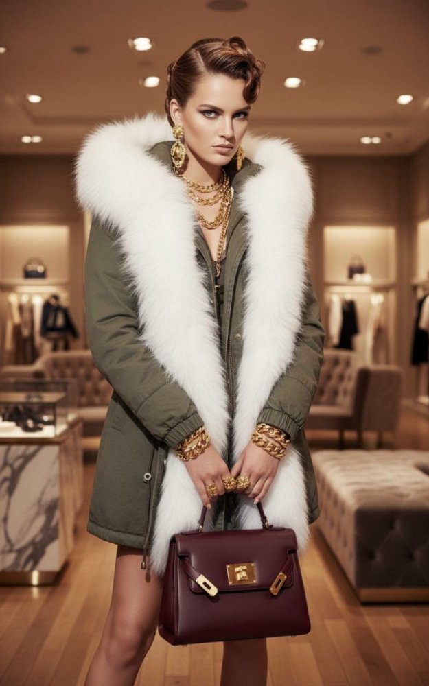 Dámská zateplená bunda s bílým kožíškem , dostupná ve velkých velikostech, je perfektní volbou pro podzimní a zimní období. Zapíná se na zip a má funkční boční kapsy. Zadní strana je o něco delší. Bunda je volná, rovná a dlouhá. Zapíná se na kovový zip krytý klopou a také na knoflíky. V pase se bunda stahuje šňůrkou. Šňůrka se zapíná i ve spodní části bundy. Kapsy bundy jsou zakončeny klopou a za...