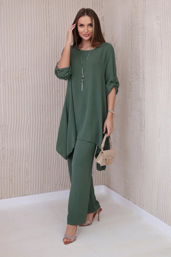 Fashionweek elegantní souprava košile a kalhoty ze vzdušného materiálu K1025 khaki
