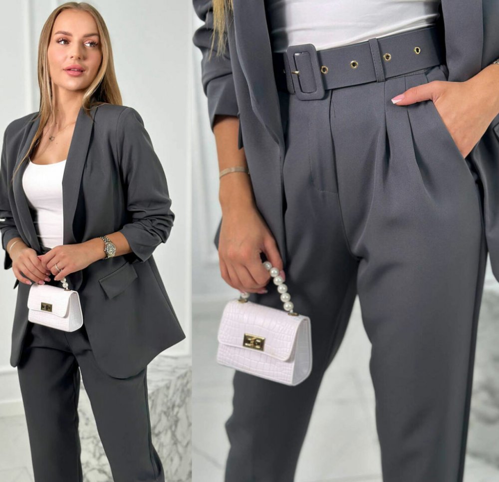 Fashionweek italská souprava elegantního saka s kalhotami K80172B grafitová