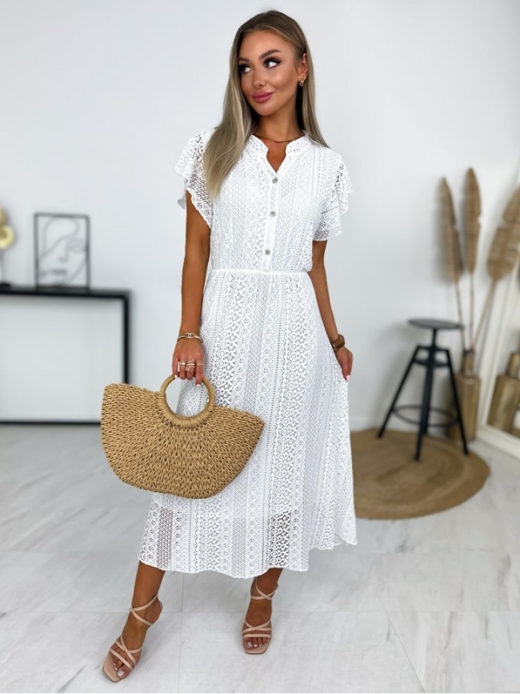 Nádherné krajkové midi šaty. Šaty mají elastický pas, díky čemuž vypadají skvěle na postavě. Horní část šatů se zapíná na knoflíky.Romantické šaty boho s podšívkou, kulatý výstřih, krátké rukávy. Jemné krajkové šaty jsou ztělesněním vytříbené a velice ženské módy, která se snadno nosí a skvěle vypadá. Navíc patří mezi top trendy letošní sezóny, takže pokud jste se s nimi ještě neseznámili, je nejvyšší čas.